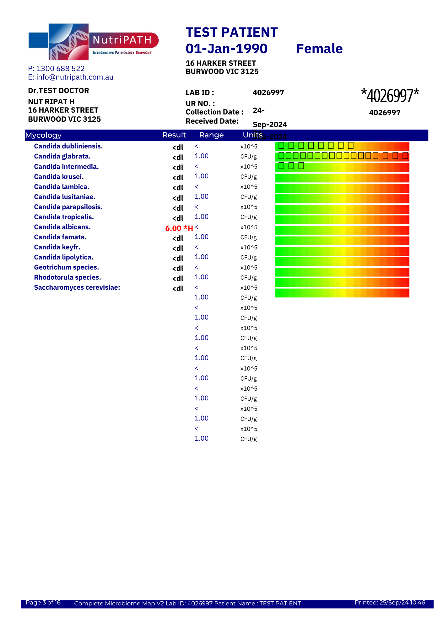 The Complete Microbiome Mapping Test was designed to assess a patient’s microbiome from a single stool sample, with particular attention to microbes that cause disease or that disrupt normal microbial balance and contribute to perturbations in the GI flora and contribute to illness.