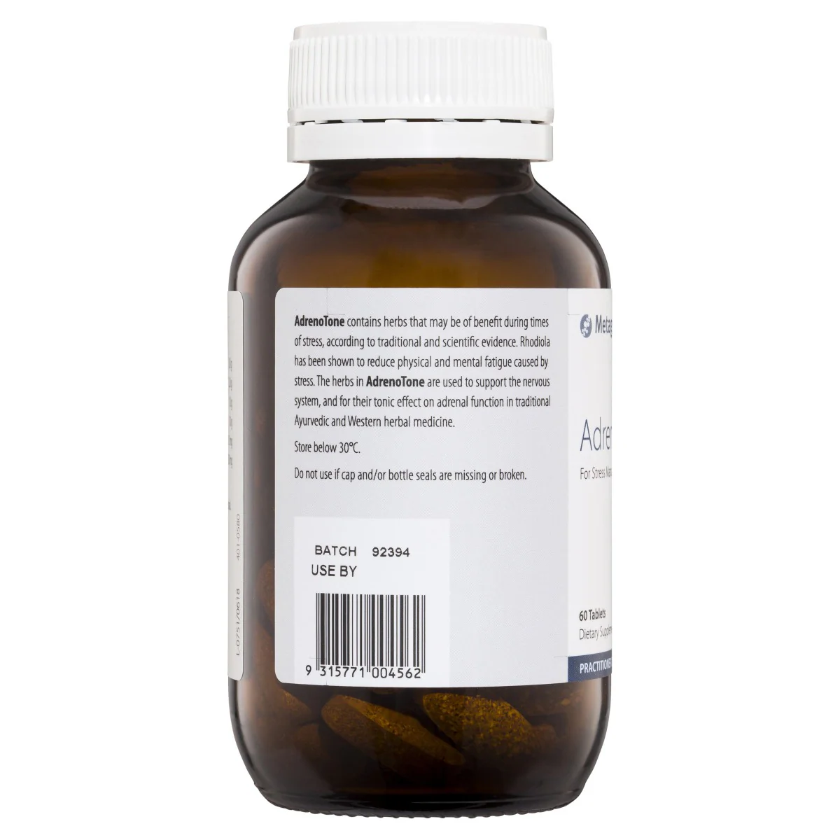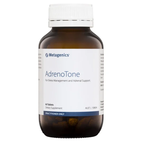 - Metagenics AdrenoTone contains herbs that may be of benefit during times of stress, according to traditional and scientific evidence.