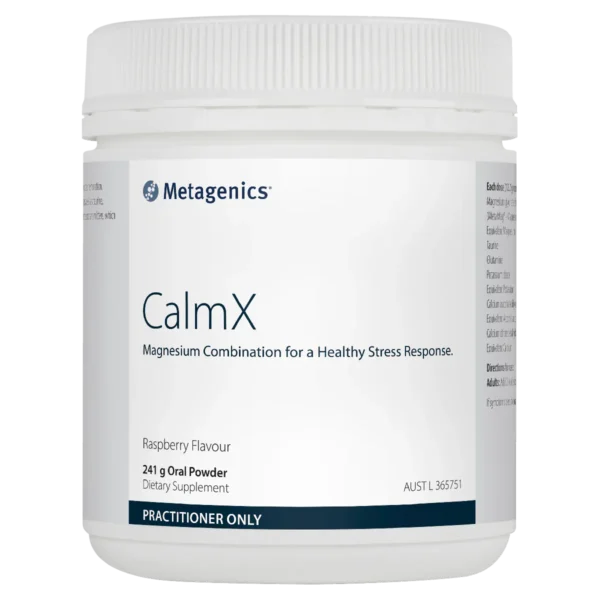 Metagenics CalmX is free from artificial colours, sweeteners, flavours and preservatives. Sweetened with steviol glycosides. Contains 362 mg of potassium per 11.9 g dose.
