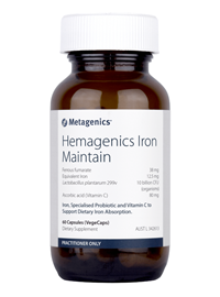 Metagenics Hemagenics Iron Maintain 60 Caps. Iron, Specialised Probiotic And Vitamin C To Support Dietary Iron Absorption.