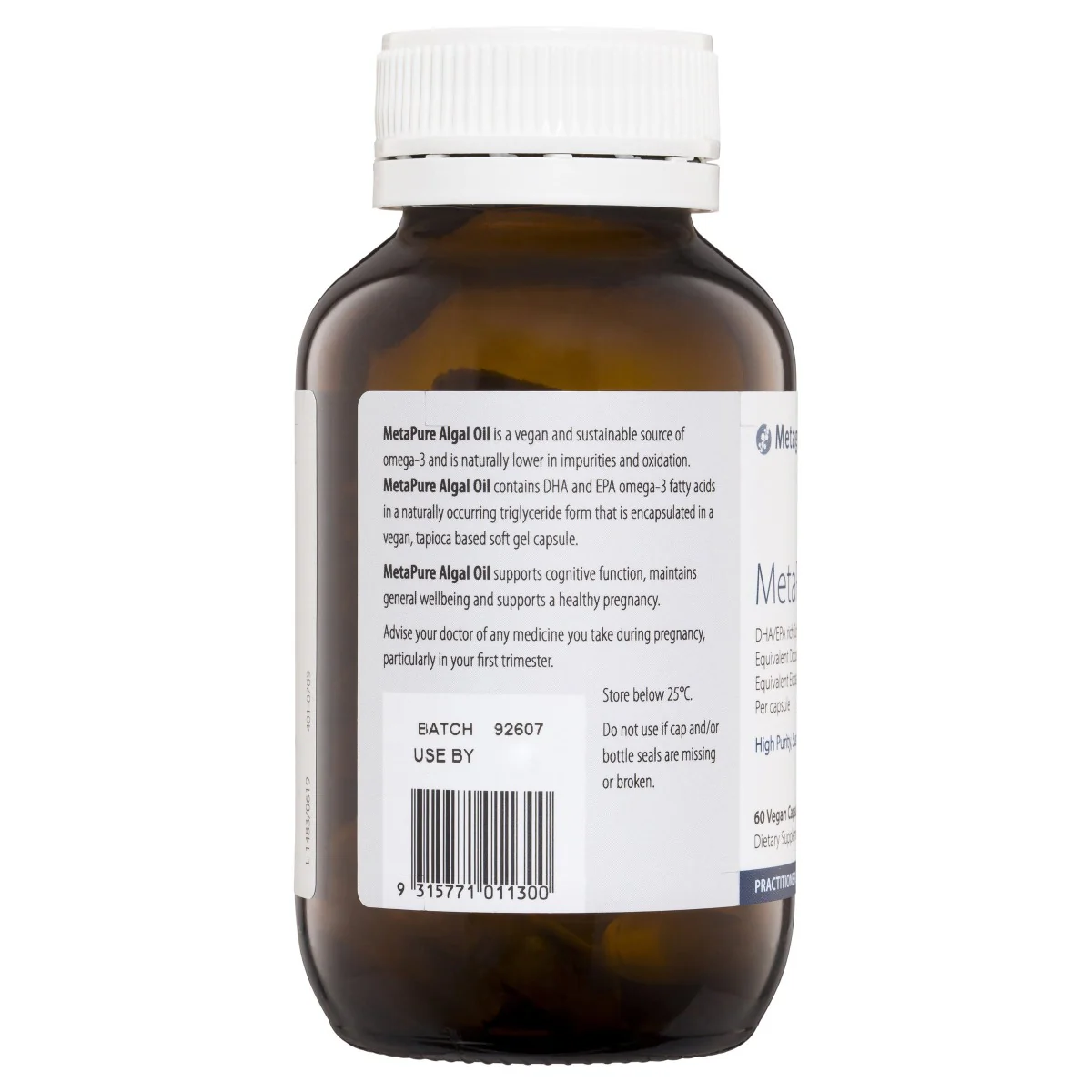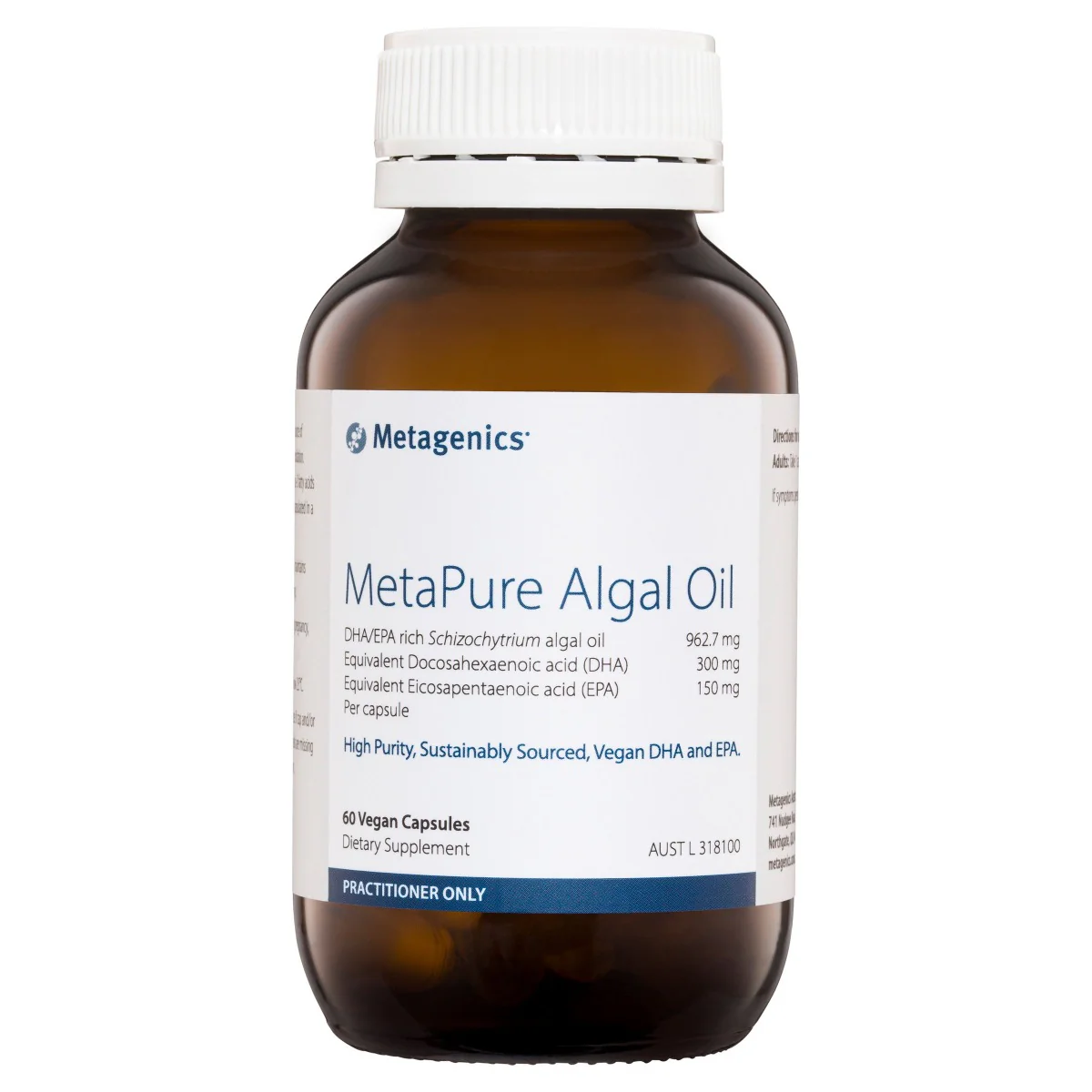 Metagenics MetaPure Algal Oil 60 capsules. High Purity, Sustainably Sourced, Vegan DHA and EPA.