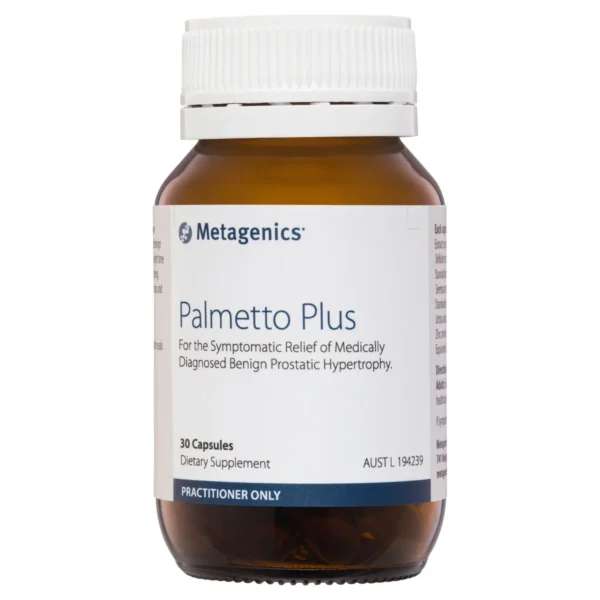 Metagenics Palmetto Plus 30 capsules. For The Symptomatic Relief Of Medically Diagnosed Benign Prostatic Hypertrophy.
