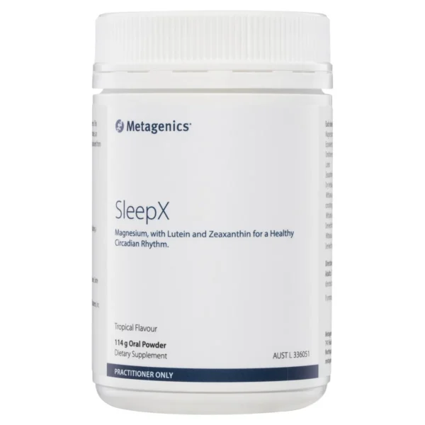 Metagenics SleepX 114g powder. Magnesium, With Lutein And Zeaxanthin For A Healthy Circadian Rhythm.