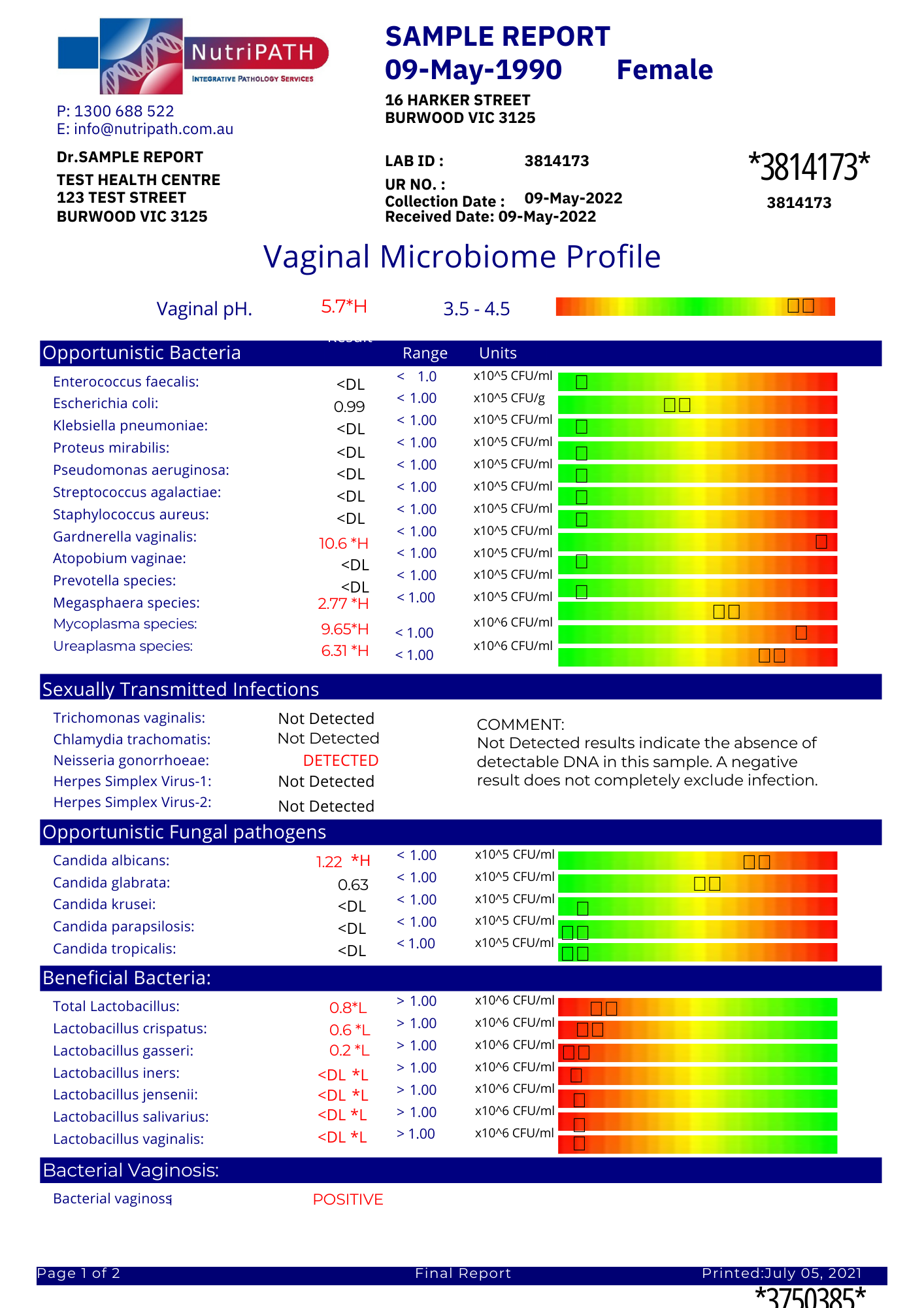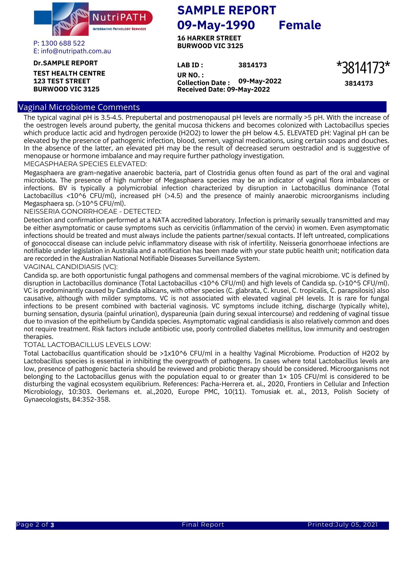 - Purpose: Helps assess vaginal health and identify any imbalances.